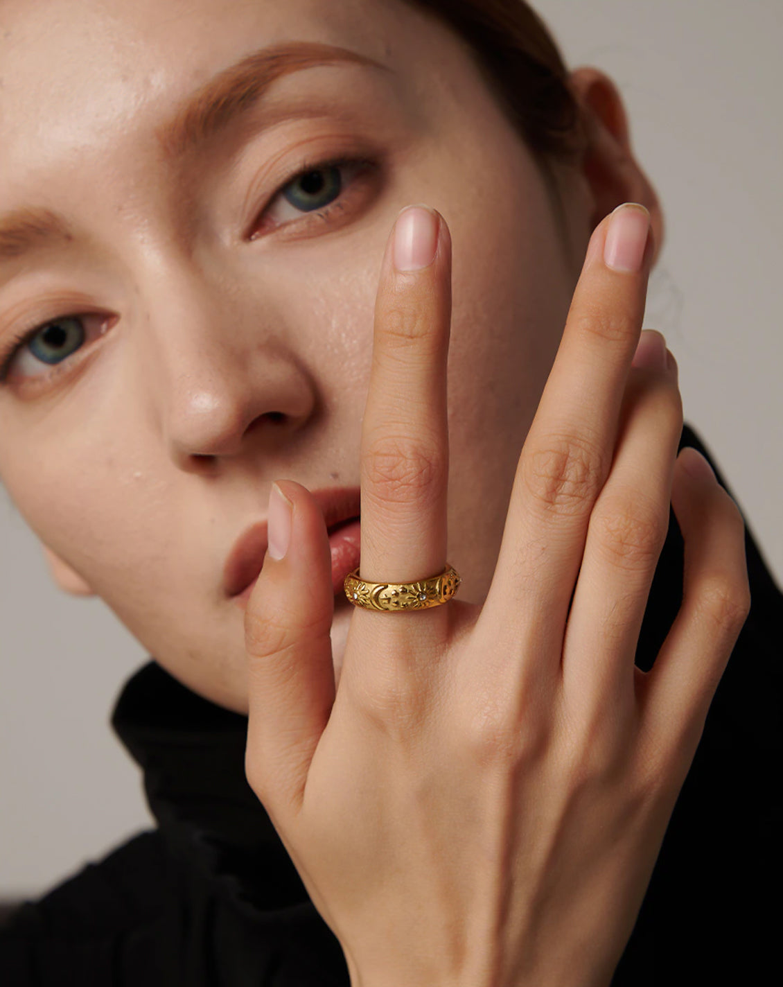 Introducing the Aurora Ring: Inspired by the Northern Lights, it's a celestial masterpiece. Handcrafted with care, adorned with cubic zirconia stones, and built to last with stainless steel. Each one is unique, a high-quality addition to your collection.